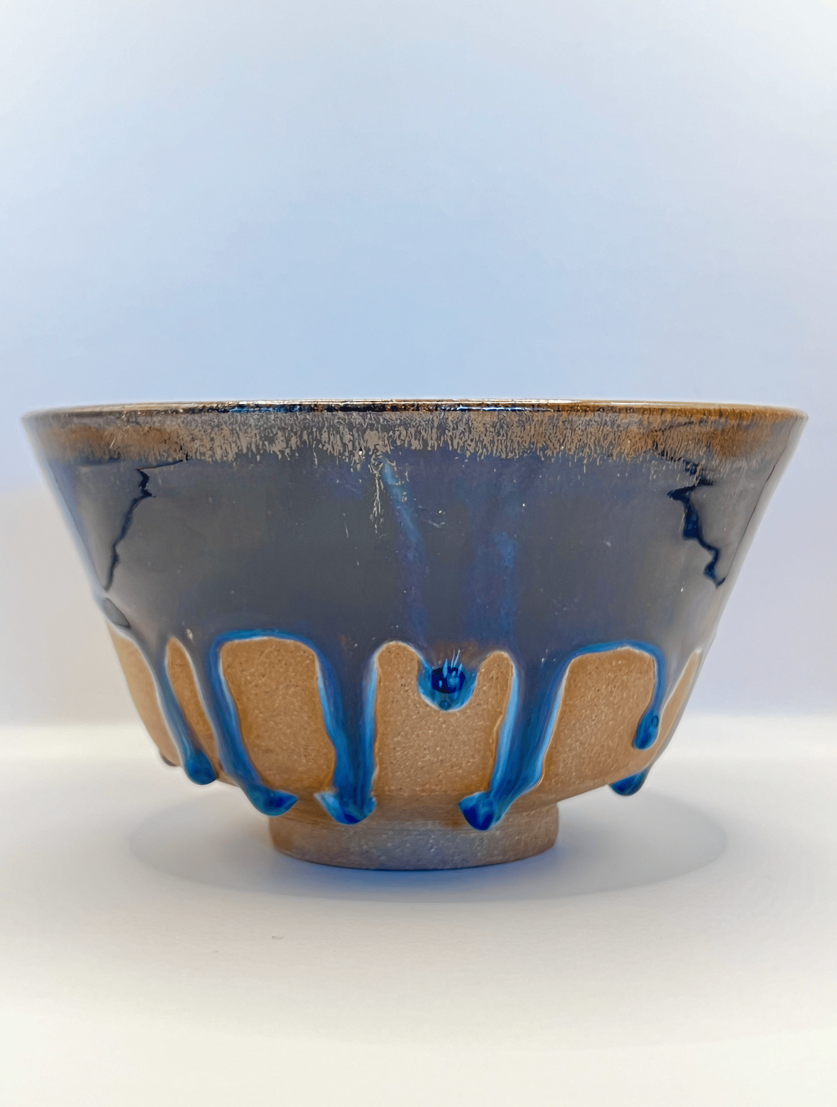 This handmade ceramic bowl is glazed in deep ocean blues and inky indigos, flowing over the natural clay beneath like currents moving under moonlight. The drips create a natural, ocean-like flow, making this bowl feel alive with movement. Inside, the glaze pools with luminous blue tones, echoing the depth of the midnight sea.