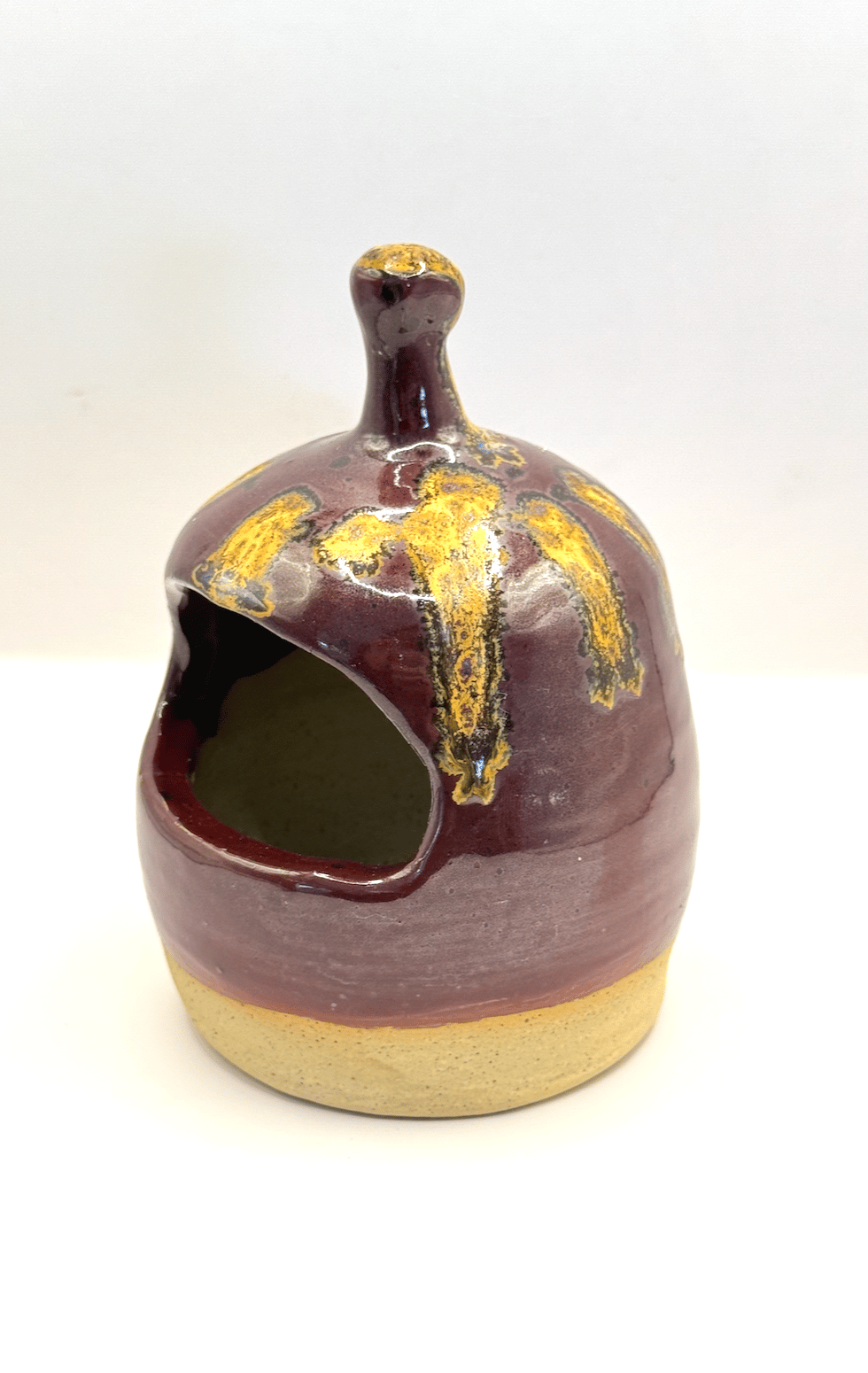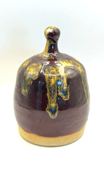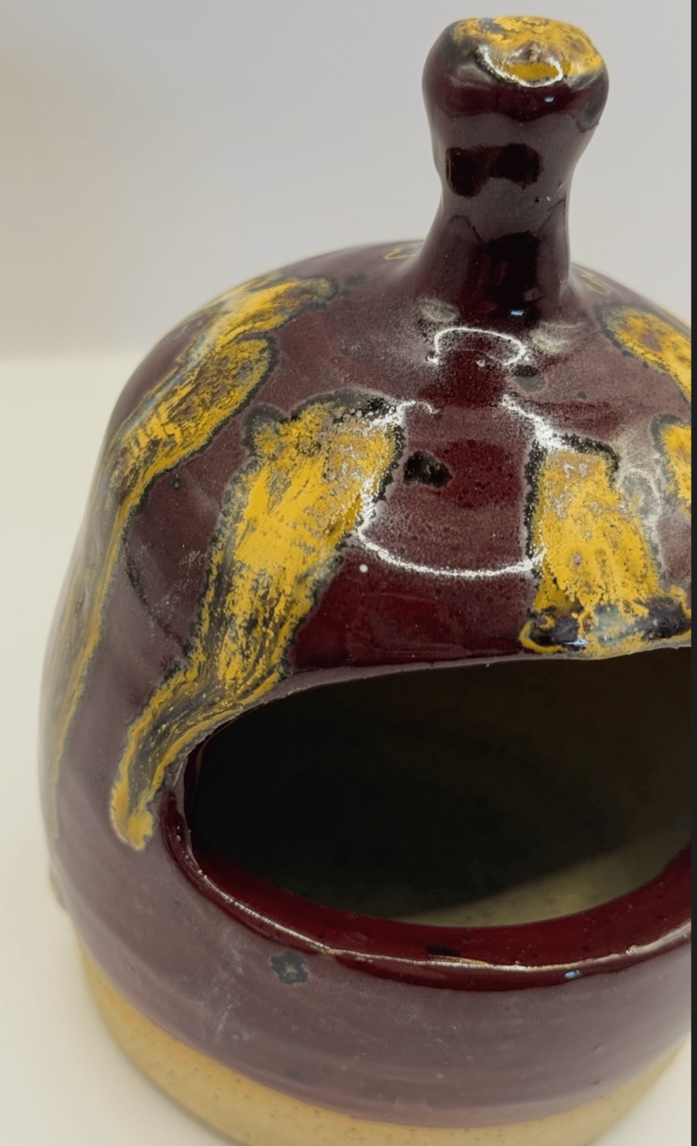 Glazed in deep burgundy tones with flowing golden accents, this salt pig is inspired by kōura, the freshwater crayfish of Aotearoa. The glaze reflects the rich reddish shells and golden highlights of these creatures, grounding the piece in both coastal life and earthy warmth. Its wide opening makes it easy to grab a pinch of salt while cooking, while its striking finish ensures it looks just as good on display.
