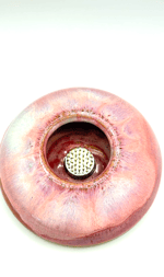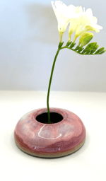 This ikebana-inspired vase is crafted with a built-in frog, allowing flowers to be arranged with ease and intention. The low, rounded form is glazed in soft pink and lilac tones that echo the delicate glow of petals under moonlight.